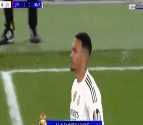 利物浦vs皇马一战,阿诺德毫无悬念地坐在替补席上。直到第82分钟,皇马主帅阿隆索做出调整,阿诺德出场,换下居勒尔。
