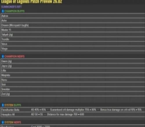 26.02版本更新预览:剑魔、寒冰增强,打野杰斯削弱